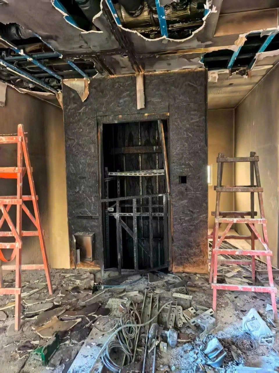Xỉ hàn rơi xuống đã làm bén lửa vào các vật liệu dễ cháy bên trong giếng thang, khiến đám cháy bùng phát và nhanh chóng lan theo phương thẳng đứng của giếng thang máy, thiêu rụi một phần giếng thang và nội thất trong căn hộ.
