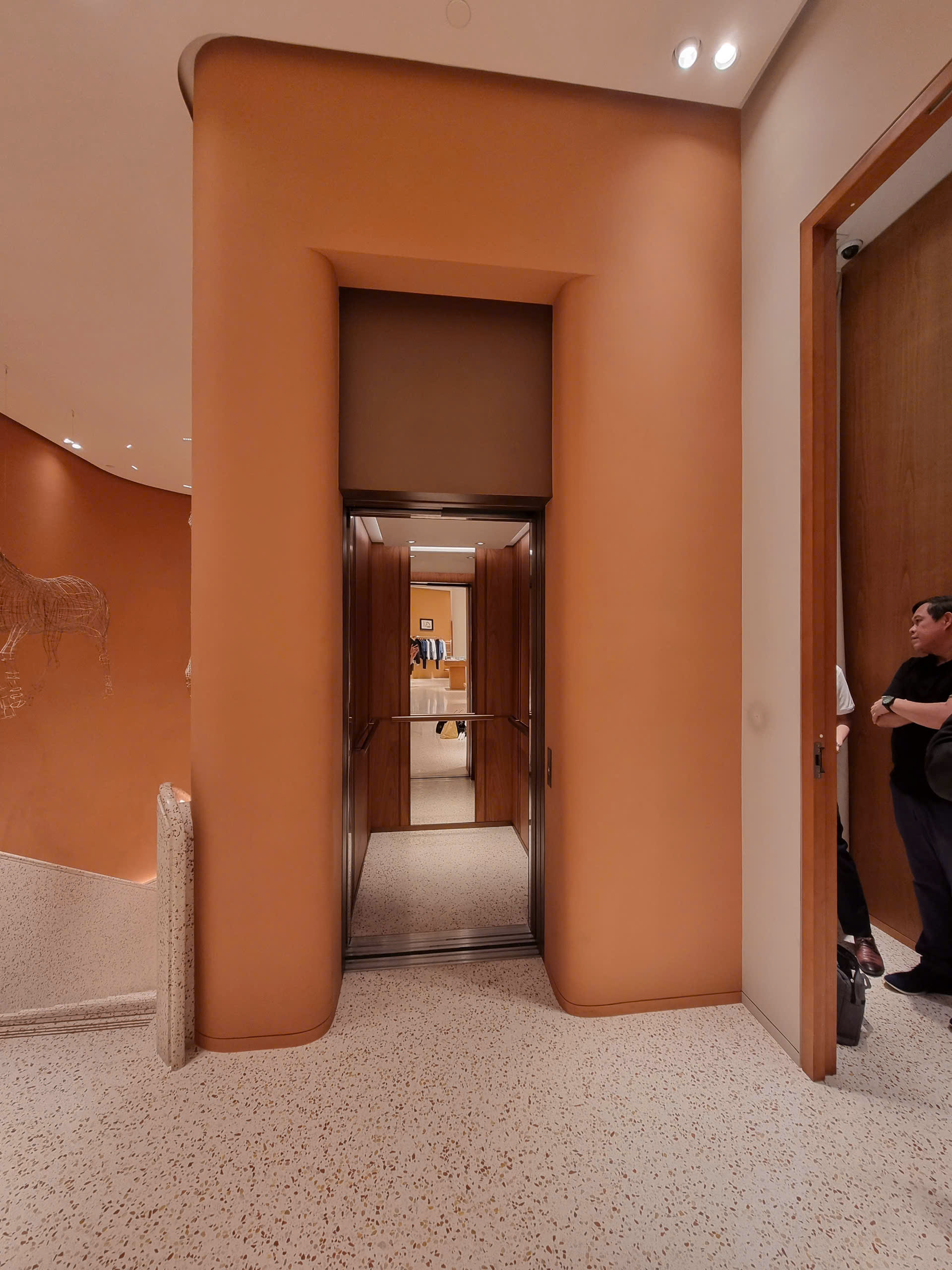 Hệ thống thang máy tại Hermès Central Embassy do Orona thiết kế mang đậm màu sắc truyền thống của hãng và hài hòa với không gian kiến trúc.