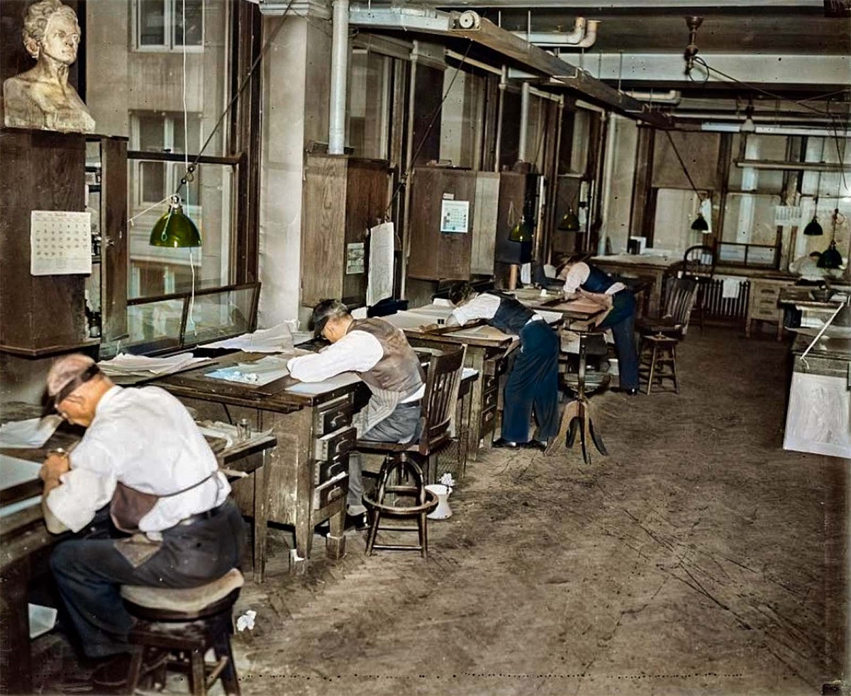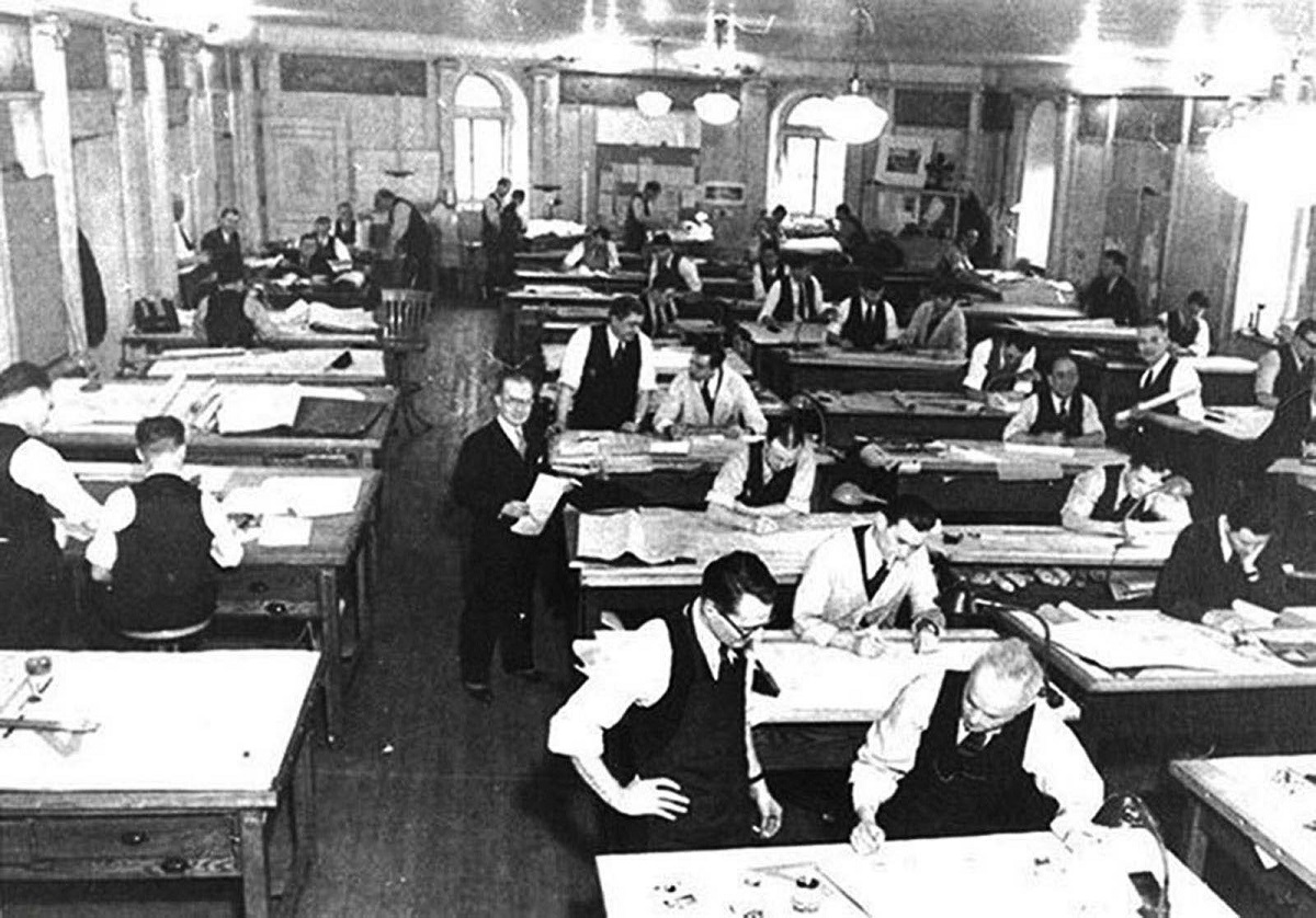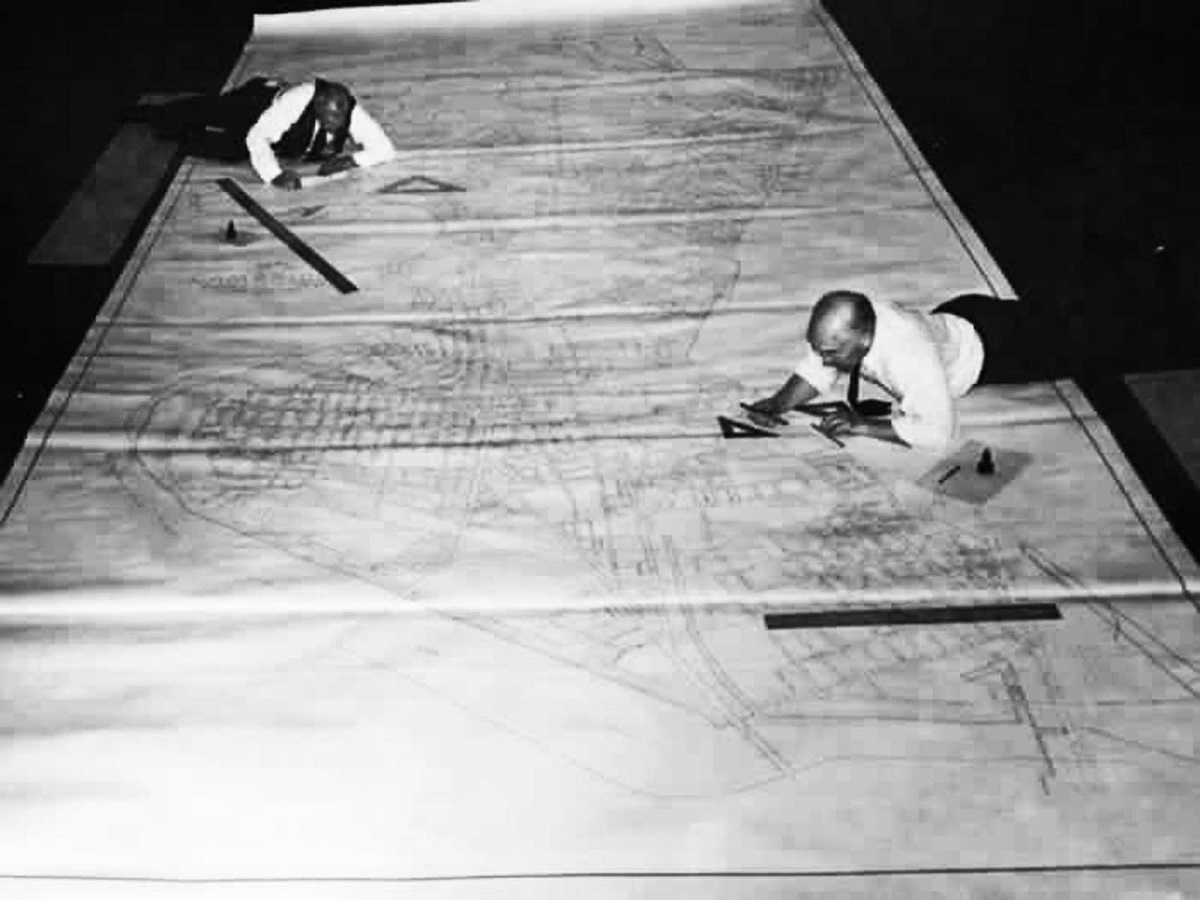 Trước khi có AutoCAD, các kiến trúc sư đã phải đứng vẽ nhiều giờ trên những tờ giấy trắng như thế này, có lẽ cũng rất mỏi chân.
