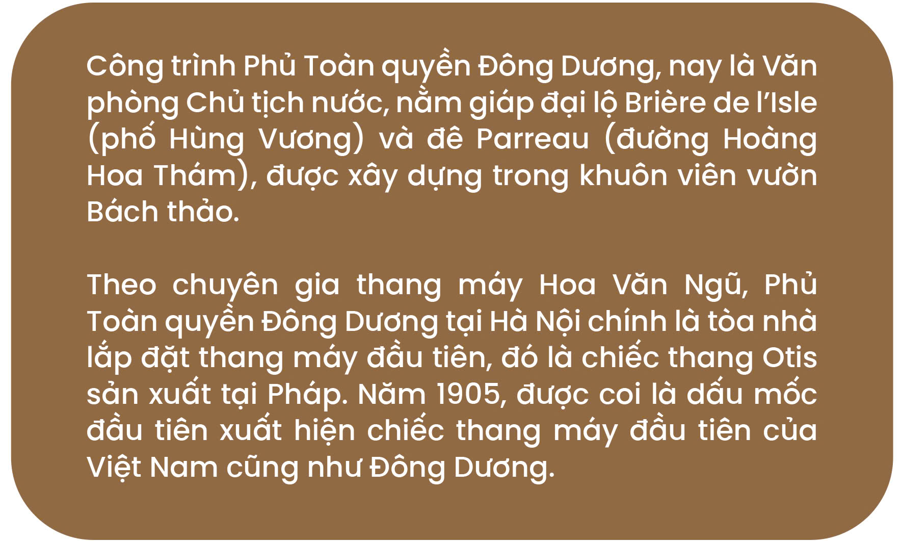 Từ năm 1900 Chính quyền Pháp ở Đông Dương đã tiến hành công cuộc xây dựng các cơ quan đầu não ở Hà Nội với mục đích biến Hà Nội thành Thủ đô của Liên bang Đông Dương. Trong nhiệm kỳ của mình (1897-1902), Toàn quyền Đông Dương Paul Doumer đã quyết định chuyển Phủ Toàn quyền Đông Dương ra Hà Nội (nay là Phủ Chủ tịch).