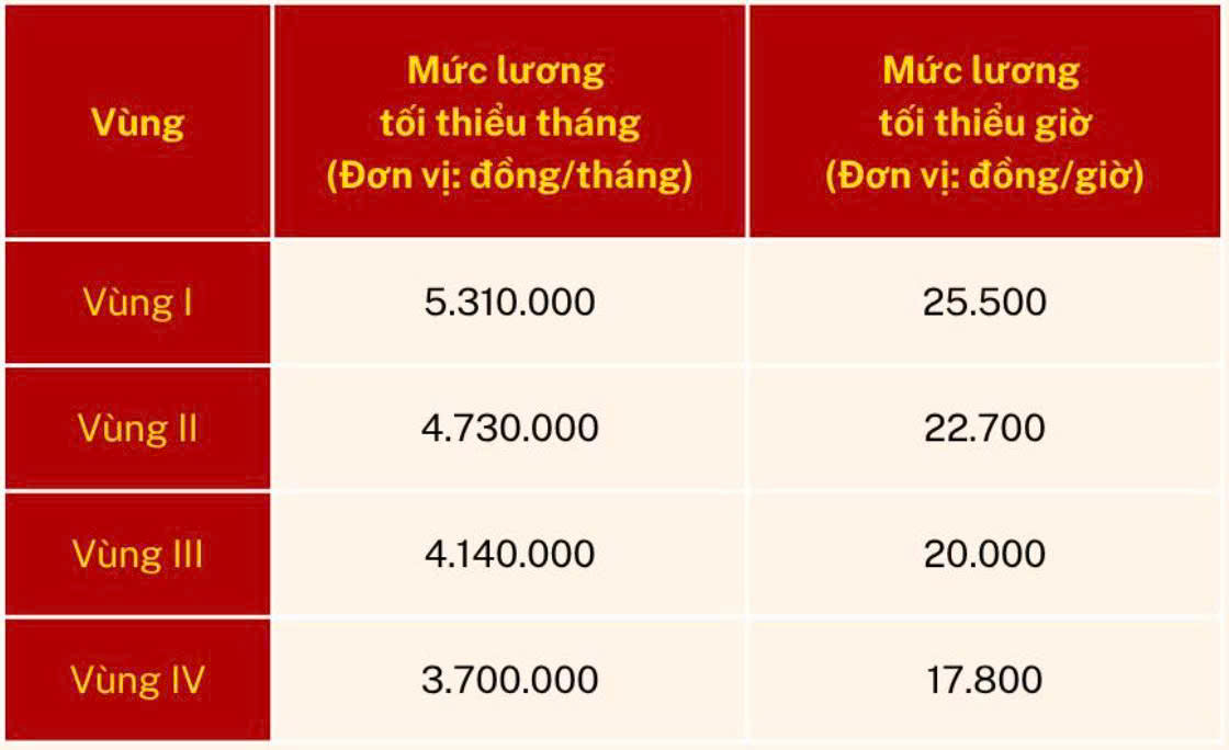 Vùng I: 5.310.000 đồng/tháng (tăng 350.000 đồng so với mức cũ).