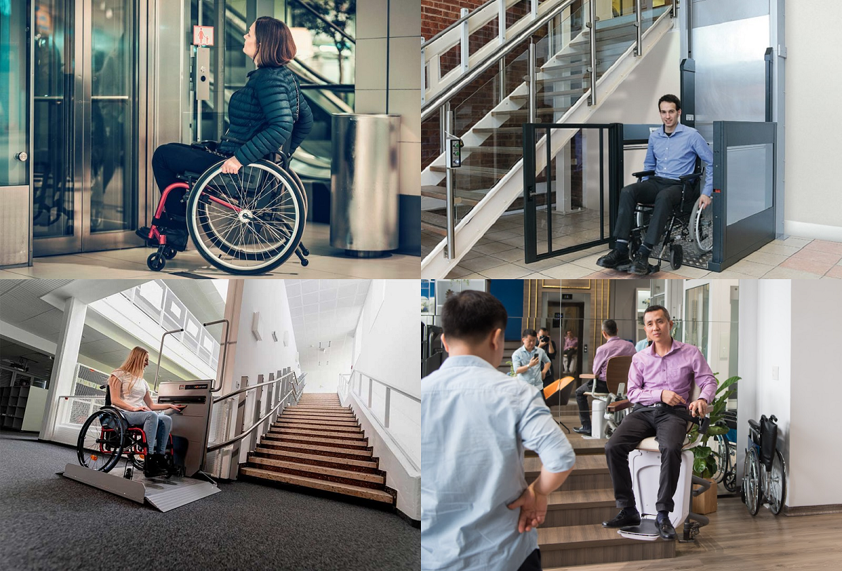 Từ thang máy thông thường được thiết kế tối ưu cho người dùng xe lăn dễ dàng sử dụng đến những chiếc stairlift dành riêng cho xe lăn. Những giải pháp này đều đang hướng tới việc người dùng xe lăn dễ dàng tiếp cận được các công trình và cả các hoạt động sinh hoạt, xã hội hàng ngày.
