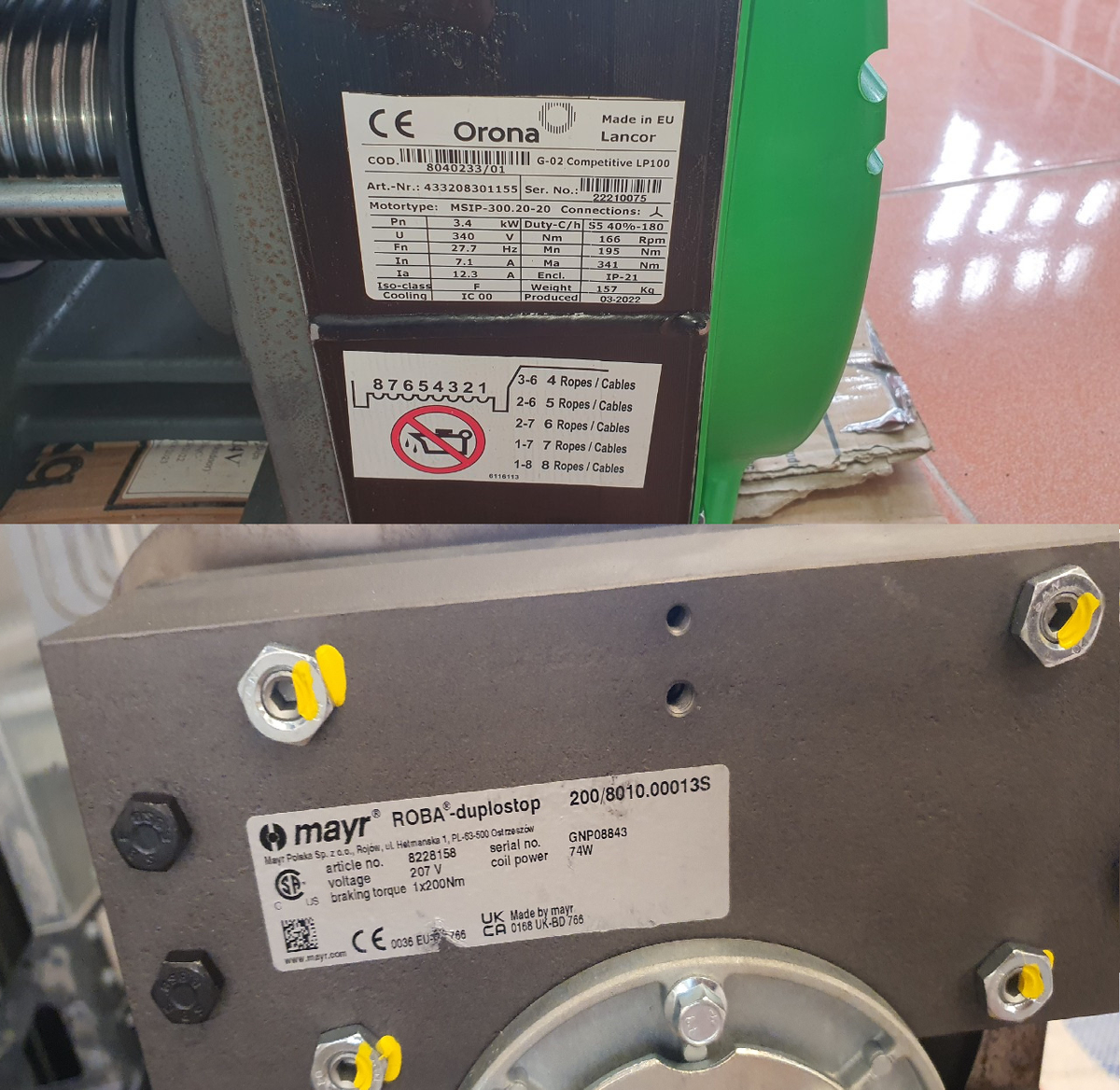 Các dòng phanh của Mayr được nhiều hãng máy kéo nổi tiếng như Montanari, Ziehl-Abegg,… sử dụng. Trong hình, máy kéo của hãng thang máy Orona sử dụng phanh ROBA-duplostop của Mayr