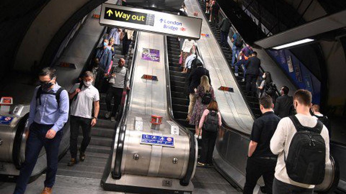 Hình ảnh người dân tại London sử dụng thang cuốn mà không bám vào tay vịn do lo ngại việc lây nhiễm dịch bệnh