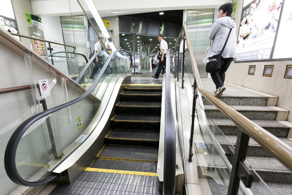 Thường được lắp đặt bởi các cửa hàng bách hóa và tại các ga trung chuyển (thường là ga xe lửa), những chiếc thang cuốn hẹp này khiến việc đi song song không thể thực hiện được.