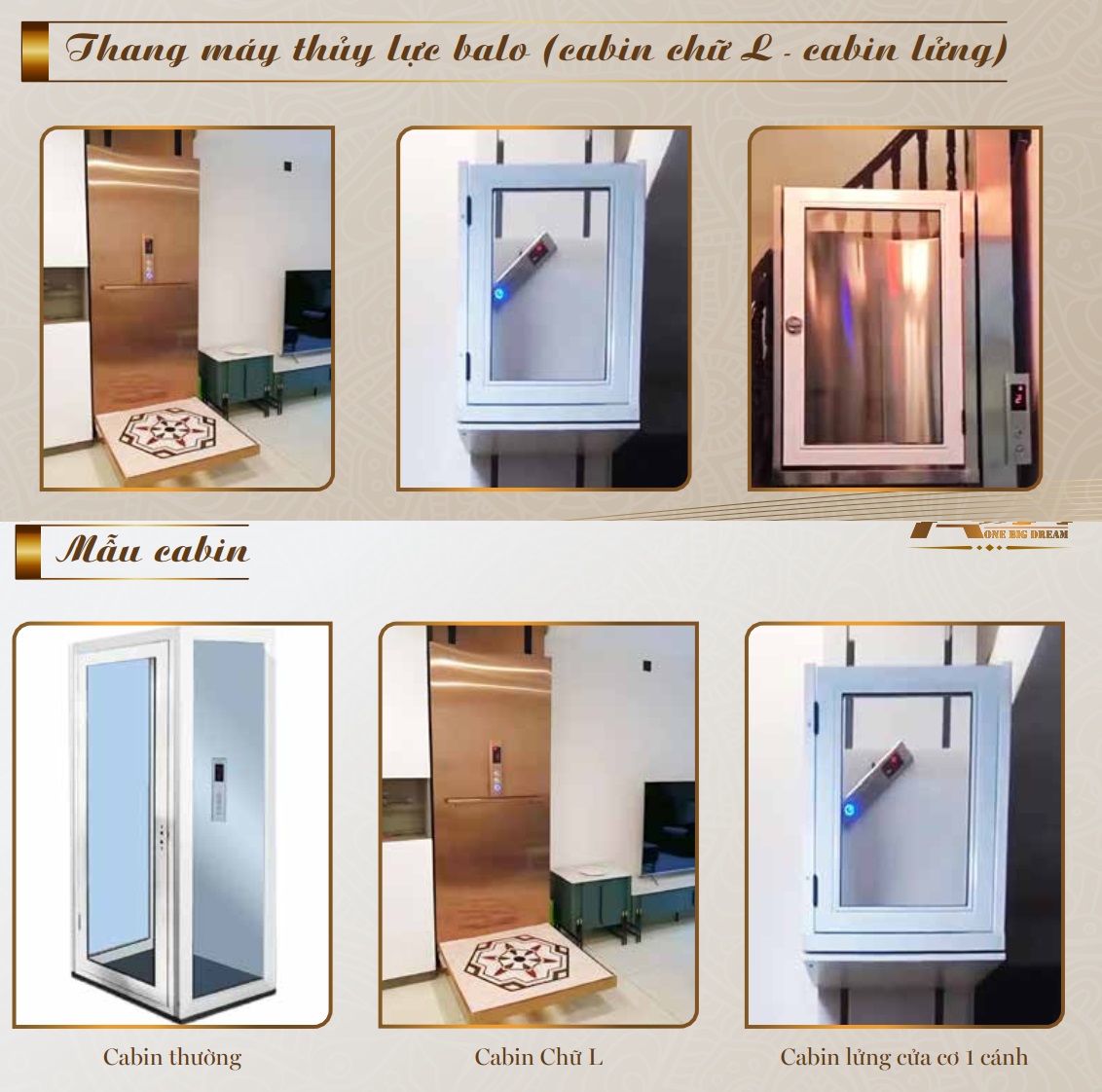 Theo catalog giới thiệu sản phẩm do nhân viên bán hàng cung cấp, công ty này còn lắp đặt các lựa chọn tối giản khác như thang máy cabin lửng và cabin chữ L (hệ bàn nâng chữ L, tức không có vách bao che cabin)