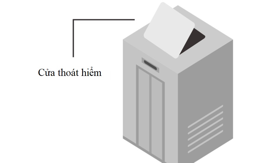 Vị trí cửa thoát hiểm thường được thiết kế chính giữa hoặc ở một góc trên nóc cabin, nhưng người kẹt trong thang máy tuyệt đối không nên cố cạy cửa này