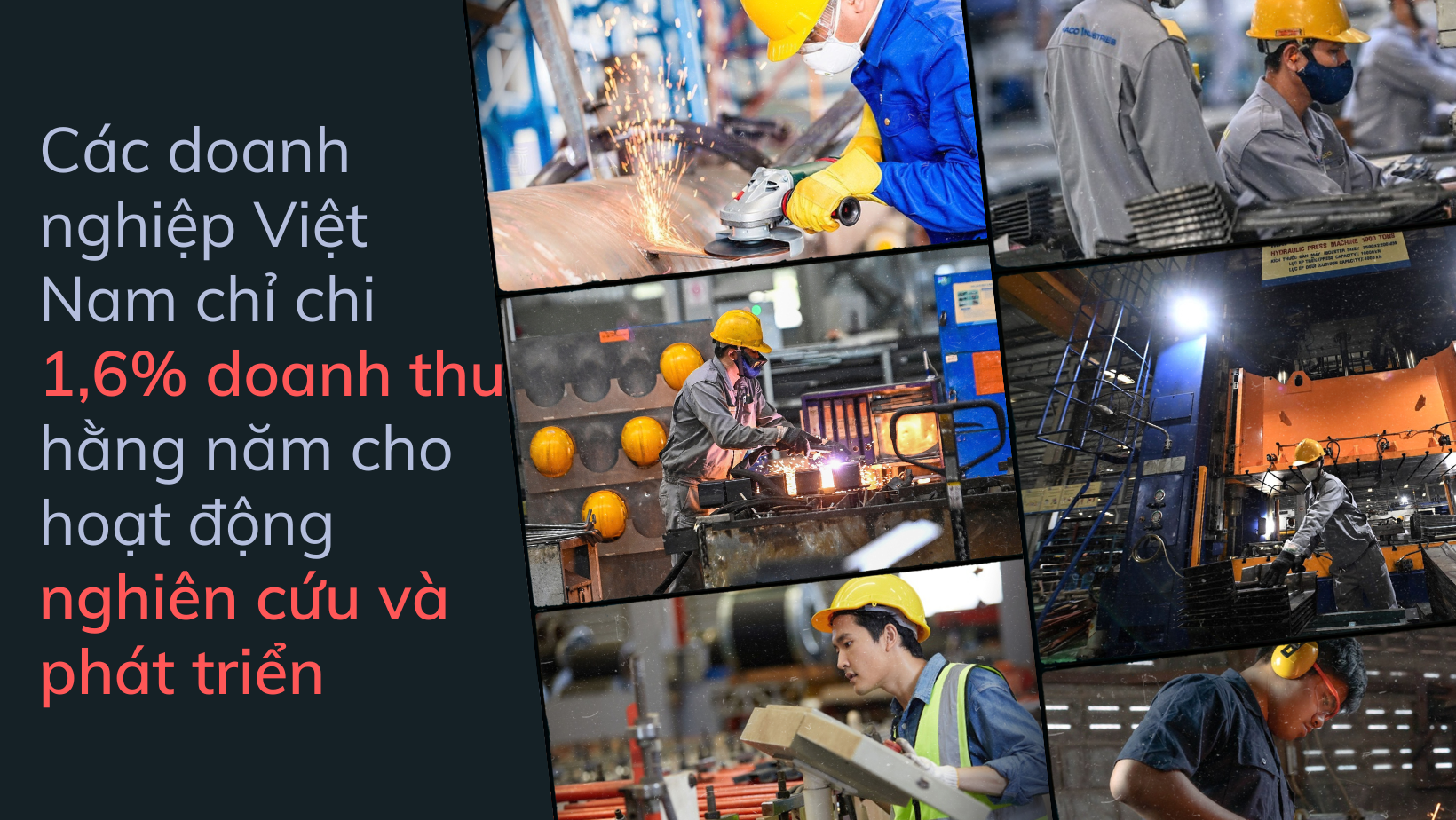 Theo số liệu khảo sát mới nhất của Bộ Khoa học và Công nghệ, các doanh nghiệp Việt Nam chỉ chi 1,6% doanh thu hằng năm cho hoạt động nghiên cứu và phát triển (R&D), thấp hơn nhiều quốc gia trong khu vực, như Philippines (3,6%), Malaysia (2,6%) và đặc biệt là Lào (14,5%).