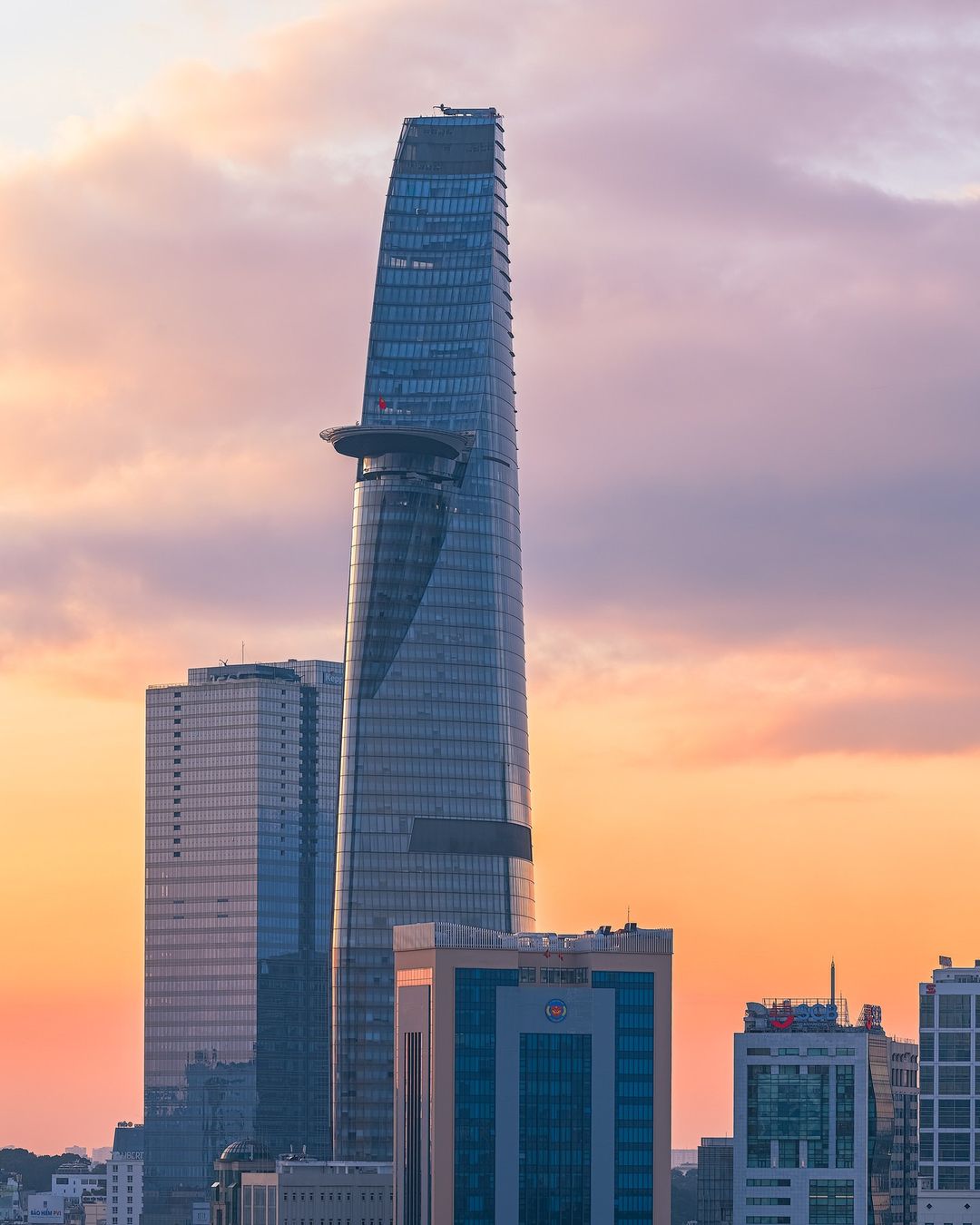Một trong những điểm nhấn nổi bật của tòa nhà là sân đỗ trực thăng tại tầng 52, vươn ra khỏi kết cấu chính 22 mét, tạo nên dấu ấn đặc trưng trên đường chân trời Sài Gòn. Chi tiết kiến trúc này góp phần định hình dáng vẻ lấy cảm hứng từ hoa sen bên dòng sông Sài Gòn.