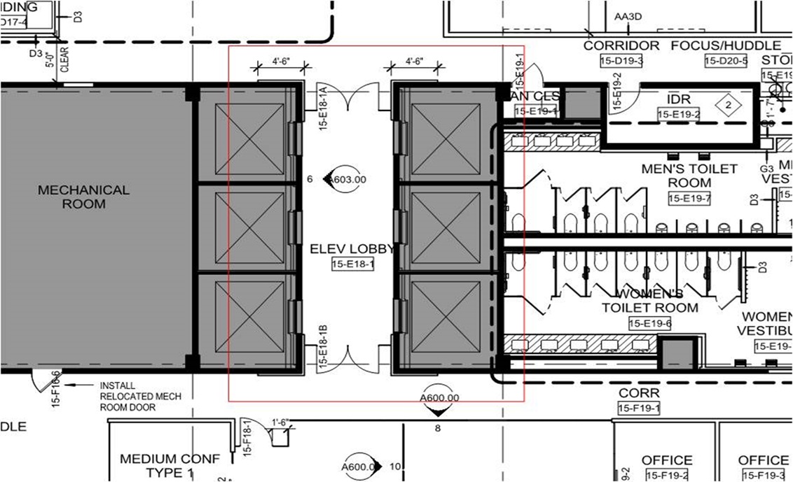 Diagram: Enclosed elevator lobby configuration