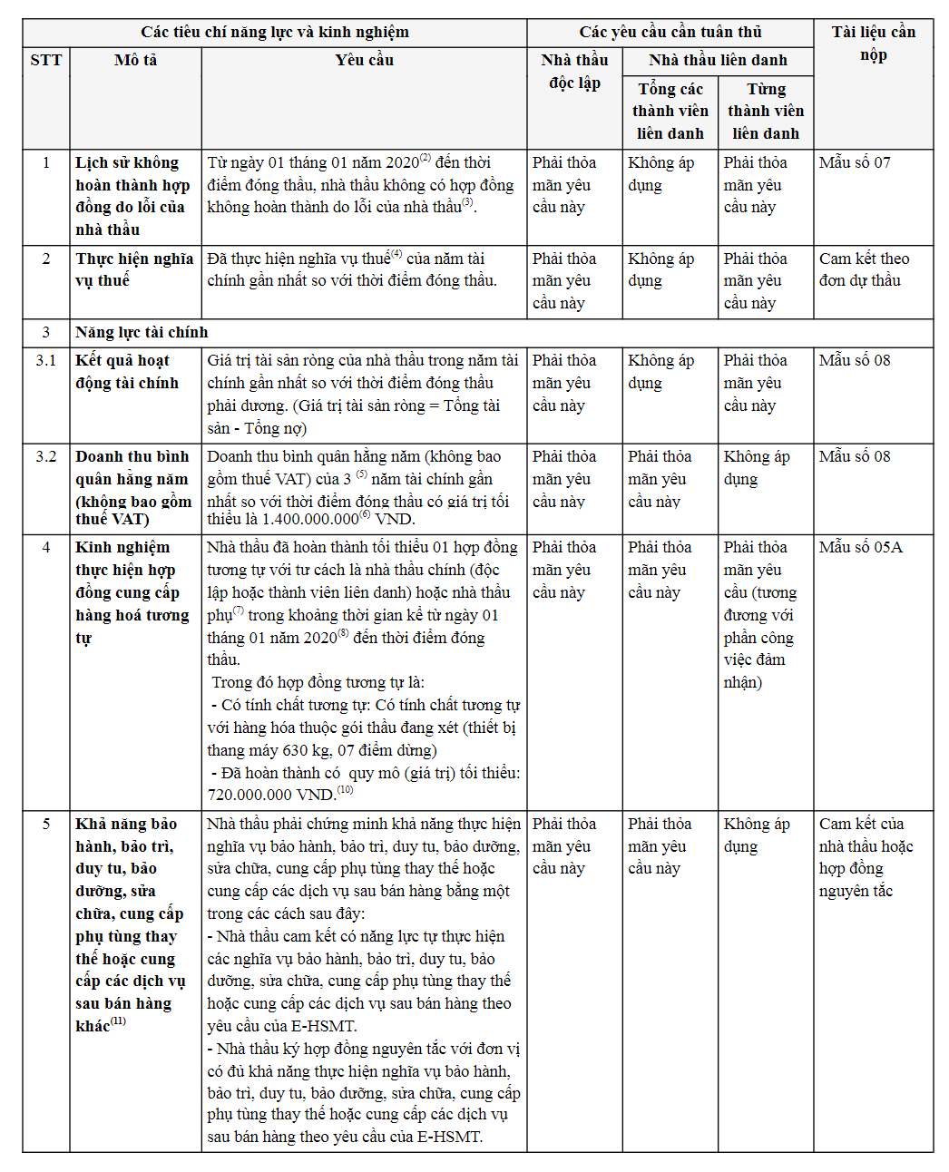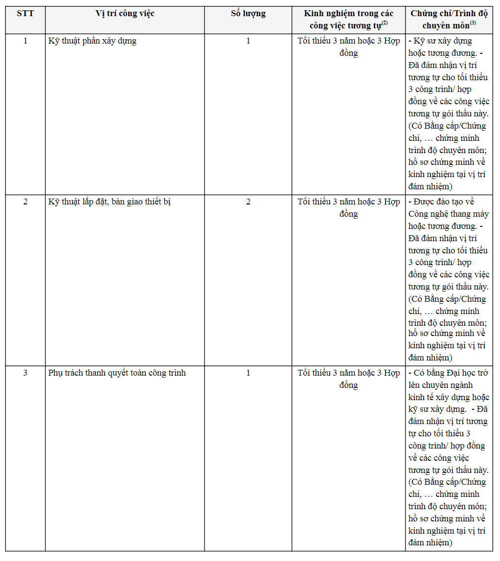 Đối với hồ sơ mời thầu này, các tiêu chí về năng lực nhà thầu, tiêu chuẩn năng lực nhân sự chủ chốt,… cho thấy nhà thầu thang máy nào cũng có thể tham gia.