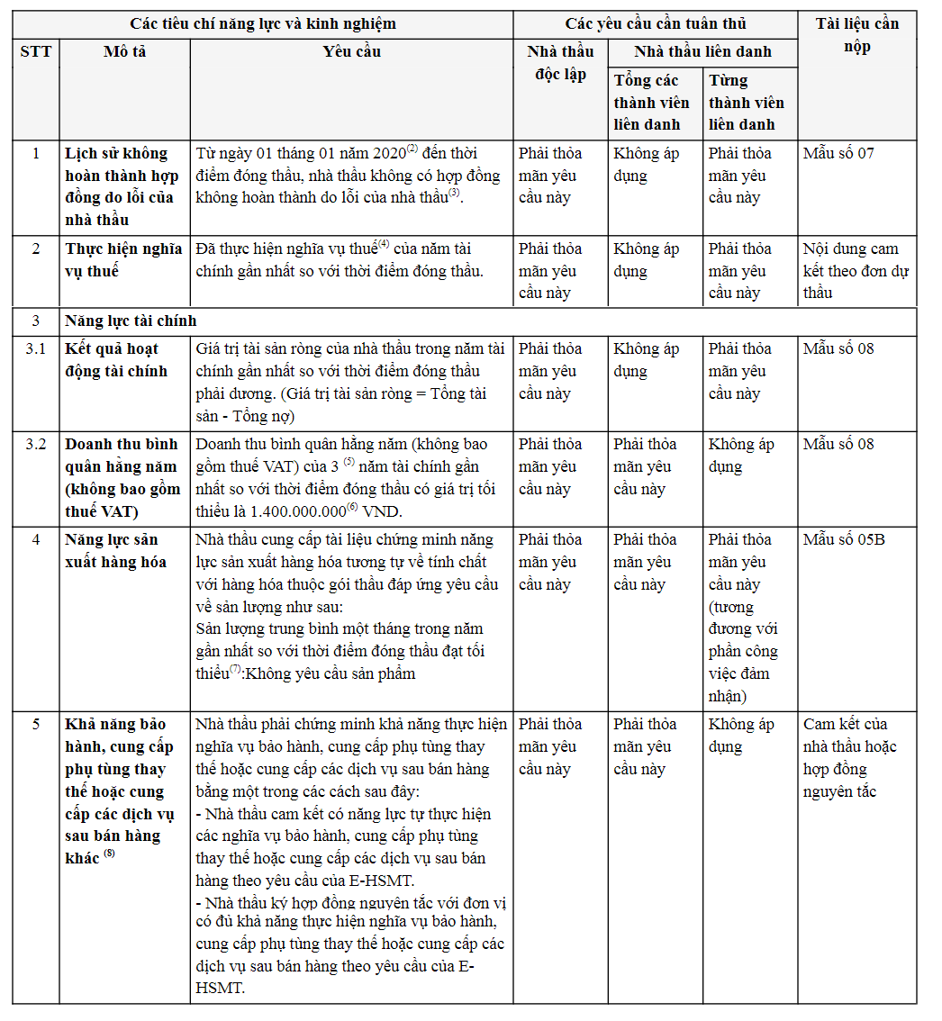 3. Tiêu chuẩn đánh giá năng lực nhà thầu