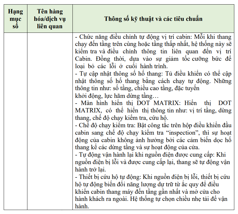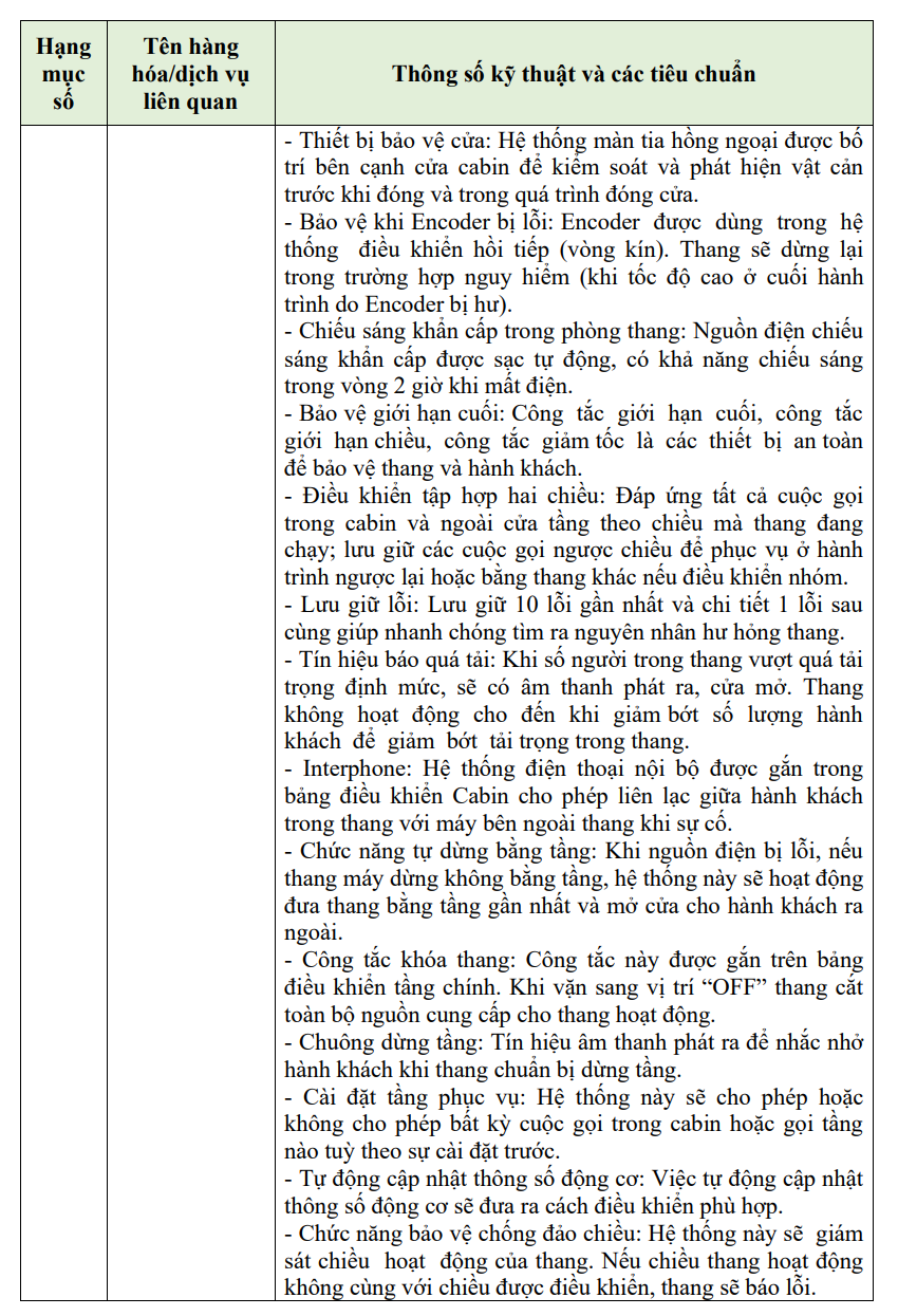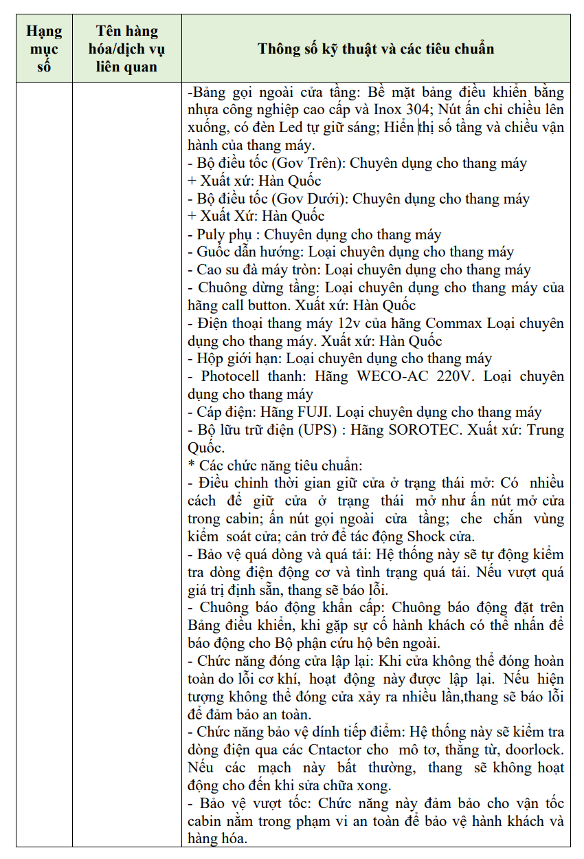 | Tên gói thầu | Cải tạo, sửa chữa hố thang, tum thang và mua sắm lắp đặt thang máy tải trọng 630 kg, 07 điểm dừng |
