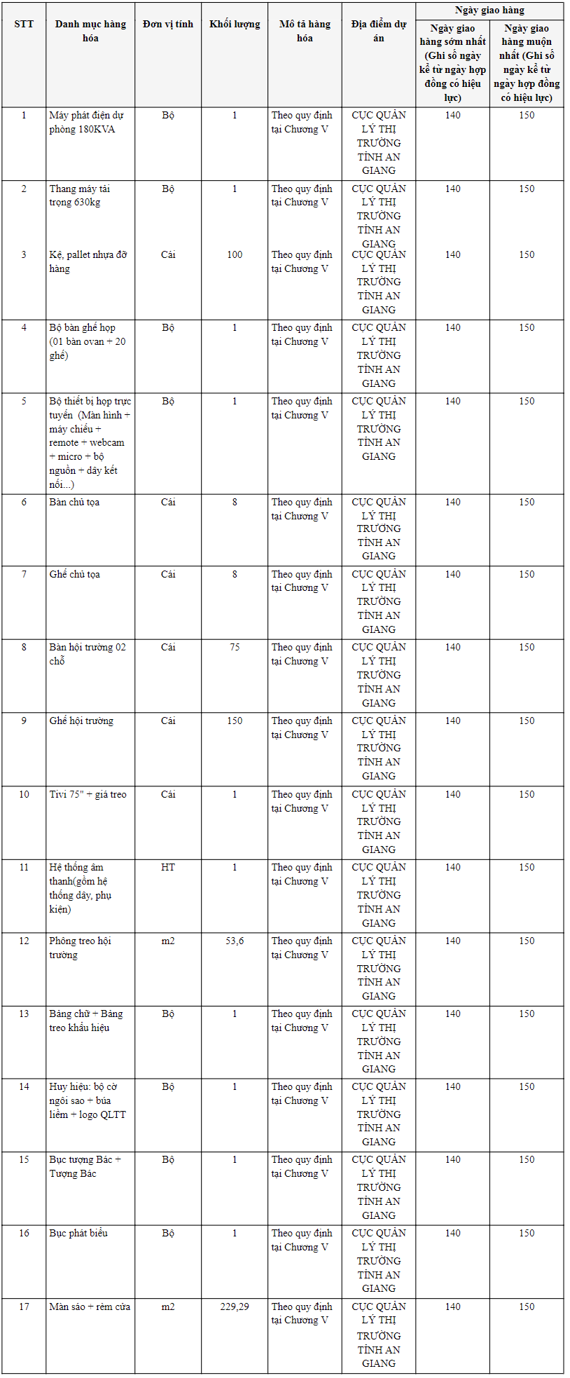 | Bên mời thầu | Cục Quản lý thị trường tỉnh An Giang |