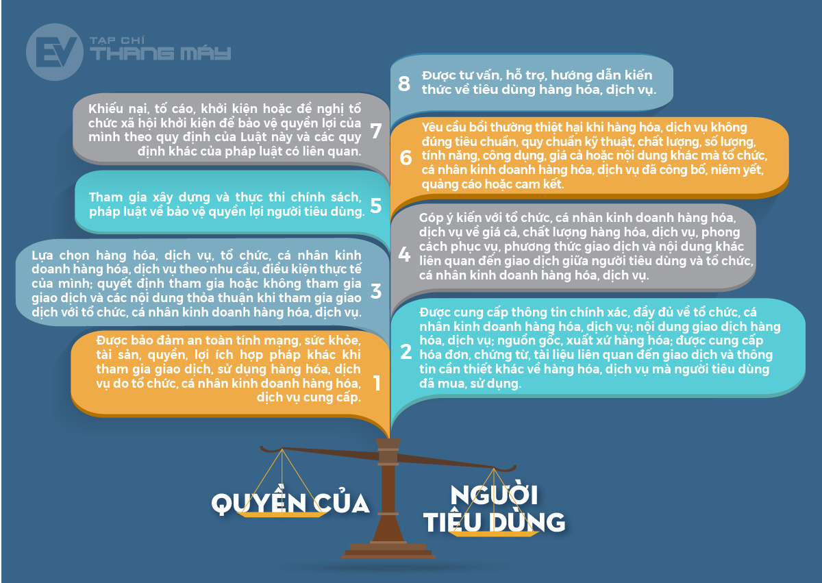 Điều 8 Luật bảo vệ quyền lợi người tiêu dùng quy định về Quyền của người tiêu dùng: