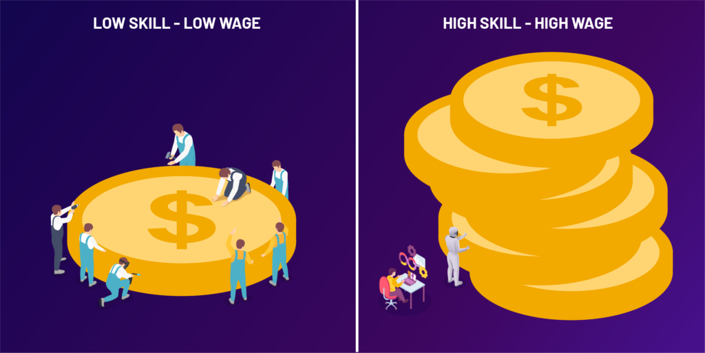 With the rapid development of science and technology, the traditional production methods so far, even if they are modern today, may be outdated tomorrow. There will be professions that gradually disappear or change in "quality". Machines are gradually taking the place of humans. At that time, inequality is becoming larger and larger, especially in the ability to disrupt the structure of the labor market. Knowledge will become even more important in future production processes. The prospect of a deeply fragmented labor market: Low Skill/Low Pay and High Skill/High Salary is not far away.