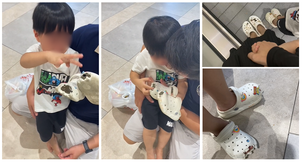 Cụ thể, khi 2 mẹ con đang xuống thang cùng nhau thì đôi dép của cậu bé bất ngờ bị thang cuốn vào. Người mẹ nhanh chóng bế con ra, rất may mắn là bé không gặp nguy hiểm nhưng cũng khiến bố mẹ một phen sợ hãi.