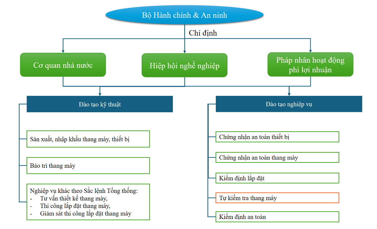 Trong khi đó, nhiều quốc gia trên thế giới đã xây dựng hệ thống đào tạo và quản lý chất lượng nhân lực thang máy chặt chẽ, toàn diện. Chẳng hạn như tại Hàn Quốc, hoạt động đào tạo và quản lý nhân lực kỹ thuật thang máy được quản lý chặt chẽ bởi Bộ Hành chính và An ninh (Bộ HC&AN) và được điều chỉnh bởi một bộ luật riêng - Luật Thang máy Hàn Quốc.