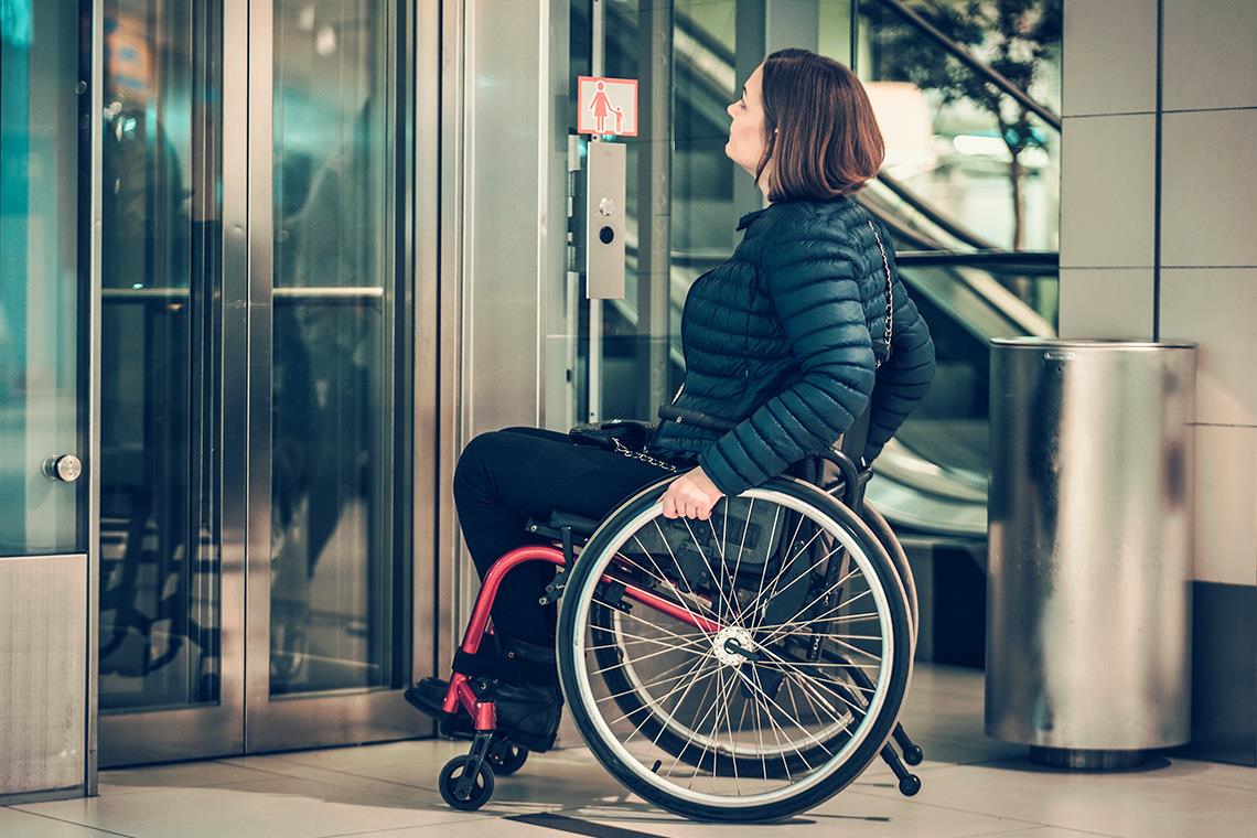 Gương trong thang máy giúp người khuyết tật sử dụng xe lăn thuận tiện hơn trong việc di chuyển bằng thang máy