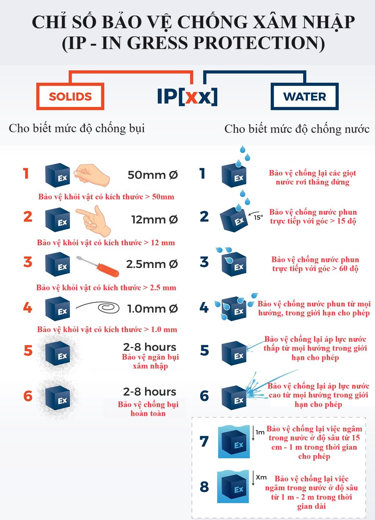 2.2 Chỉ số chống nước, bụi (IP)