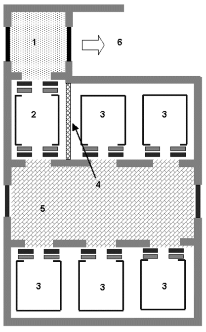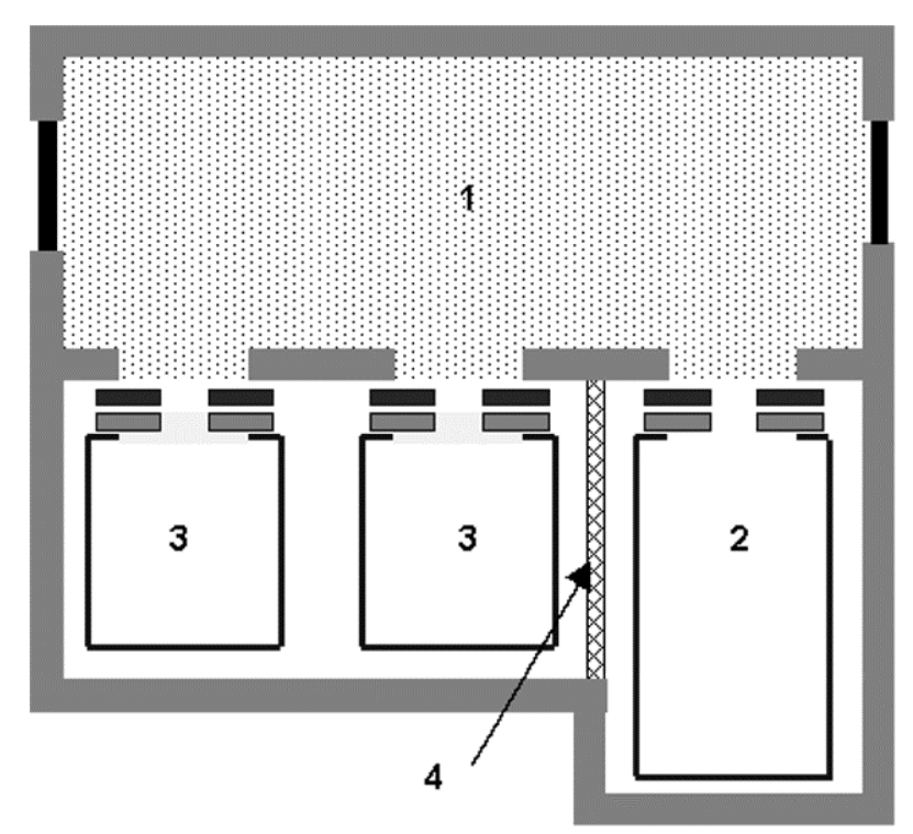 Hình B.2 – Bố trí cơ bản của thang máy chữa cháy được bố trí chung giếng thang với thang thông thường và khu vực sảnh an toàn.