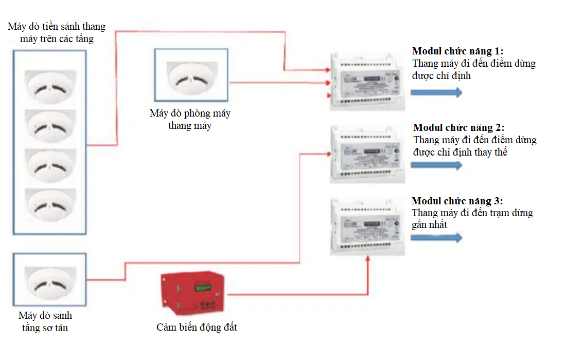 Hoặc dựa trên những tín hiệu cảnh báo của hệ thống cứu hỏa trong tòa nhà, thang máy sẽ dừng ở điểm dừng tầng gần nhất.