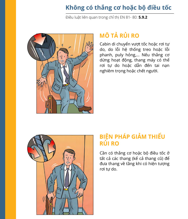 Còn thông thường, dù thang bị đứt cáp, phanh bị hỏng, thang chạy vượt tốc hoặc một số sự cố kỹ thuật khác thì bộ khống chế vượt tốc của thang máy sẽ phát huy tác dụng. Bộ phận này có vai trò kiểm soát tốc độ thang máy, khống chế thang máy di chuyển với tốc độ nhất định trong khoảng thời gian cho phép.