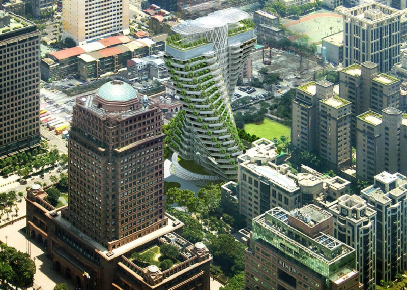 Tòa tháp xanh và xoắn được thiết kế bởi Vincent Callebaut Architecture có trụ sở tại Paris, đơn vị đã giành chiến thắng trong cuộc thi thiết kế cho dự án vào tháng 11 năm 2010. Tòa nhà được động thổ xây dựng vào tháng 3 năm 2013 và hoàn thành vào tháng 9 năm 2017.