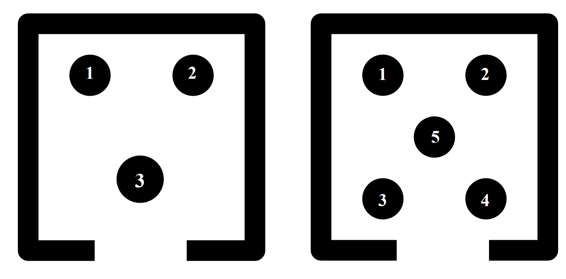 Hành khách dường như biết cách sắp xếp theo bản năng trong thang máy. Hai người lạ sẽ đi vào các góc sau, người thứ ba sẽ đứng cạnh cửa. Ba người cách nhau một khoảng cân đối cho đến khi người thứ tư bước vào, lúc đó hành khách thứ ba và thứ tư sẽ tản ra các góc phía trước và nhường chỗ ở trung tâm cho người thứ năm giống như các dấu chấm trên con súc sắc.