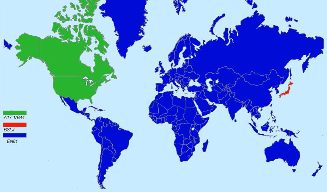 Bản đồ các quốc gia tham khảo, sử dụng Tiêu chuẩn châu Âu EN 81. (Nguồn: CEN)