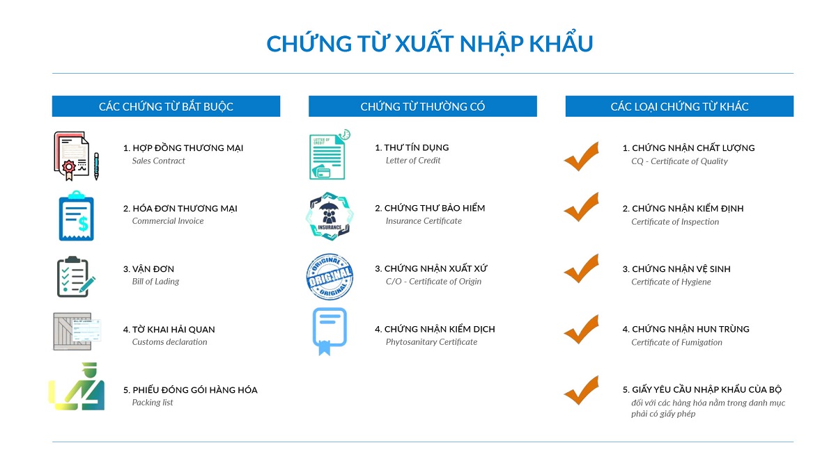 Các loại giấy tờ thường có trong một bộ chứng từ xuất nhập khẩu