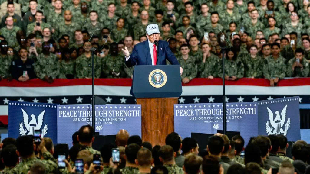 Tổng thống Trump phát biểu trên tàu sân bay USS George Washington ở Nhật Bản ngày 28/10. Ảnh: AP