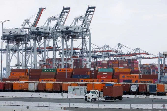 Các container hàng hóa xếp tại cảng Los Angeles ở San Pedro, bang California, Mỹ. Ảnh: Reuters.