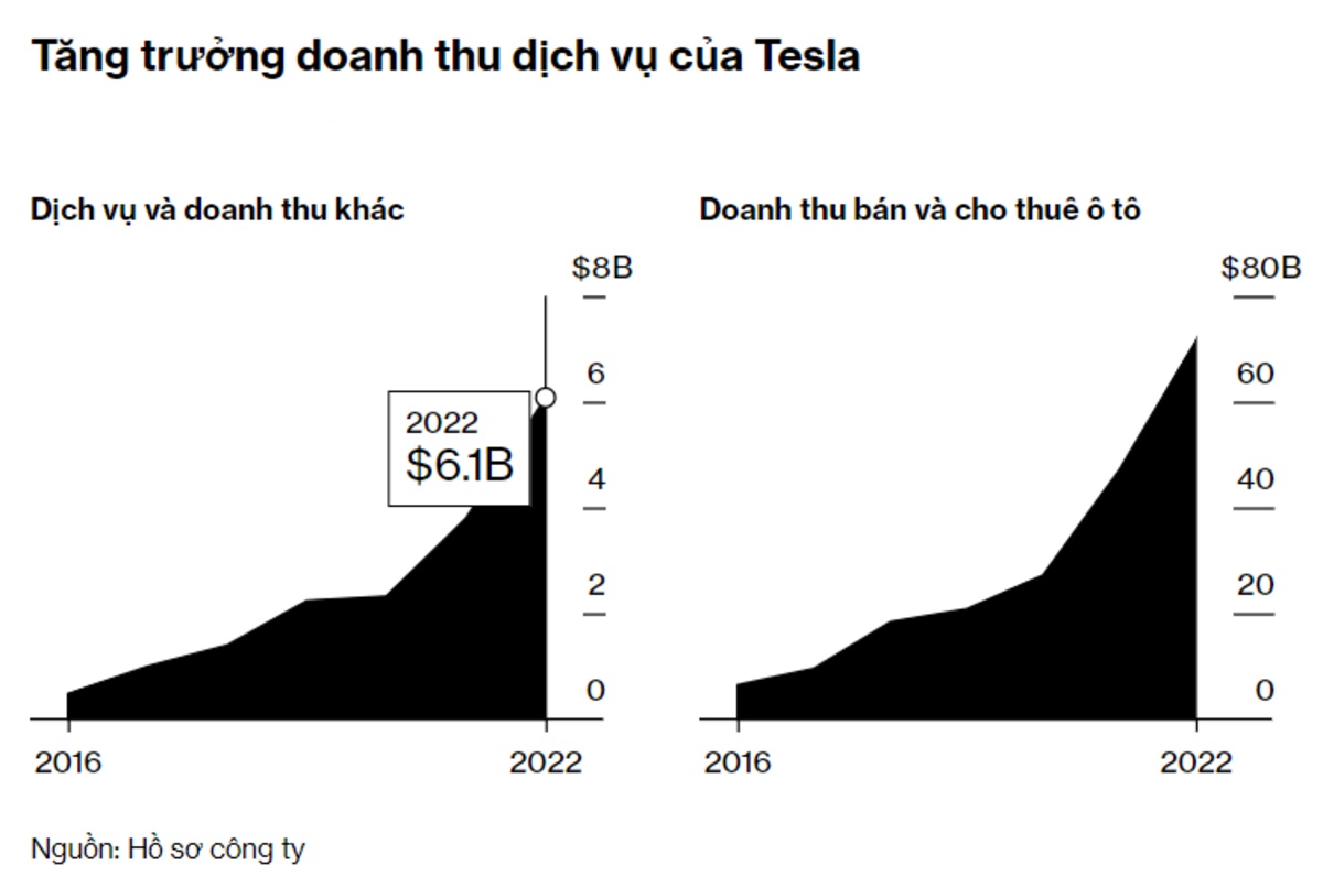 Tăng trưởng doanh thu dịch vụ của Tesla (Biểu đồ: Bloomberg)