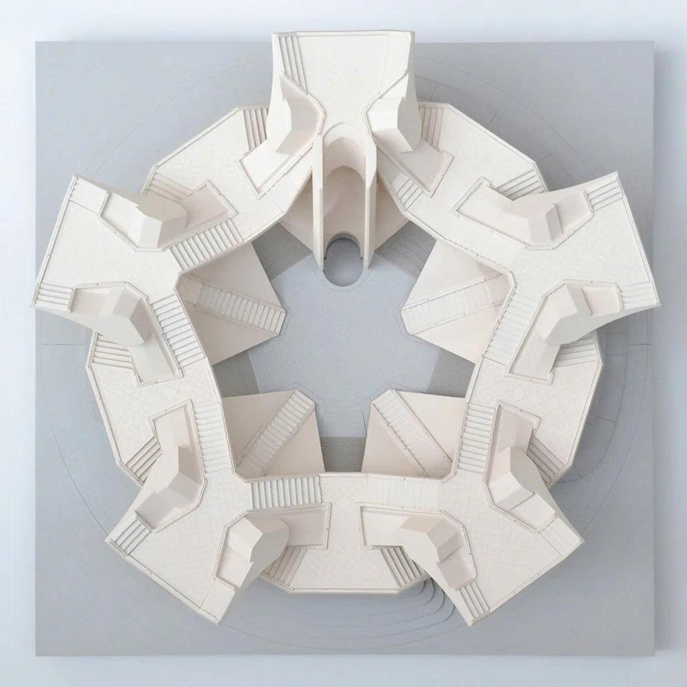 The entire structure is formed by the interconnection of its stairways, which together act as the primary load-bearing frame. The underside of each stair is clad in copper-toned steel, making the whole piece gleam in the sunlight. Vessel employs a closed structural system that does not rely on conventional columns or beams; instead, a steel column is inserted between each pair of stairways, creating a naturally integrated, self-supporting network.