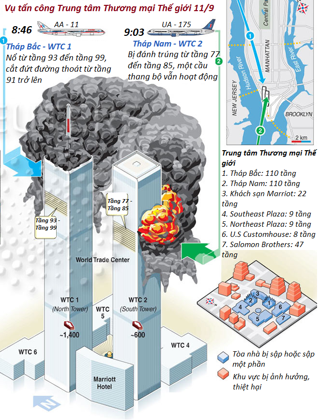 Toàn cảnh vụ khủng bố ngày 11/9/2001 tại Trung tâm Thương mại Thế giới, Mỹ