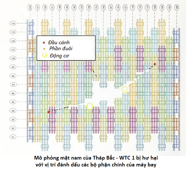Kết quả là tất cả các lối thoát - cụ thể là ba cầu thang bộ, từ tầng 91 trở lên đều không thể sử dụng được. Không có lối thoát, hàng trăm người phía bên trên điểm va chạm đã thiệt mạng khi tòa tháp bị sập.