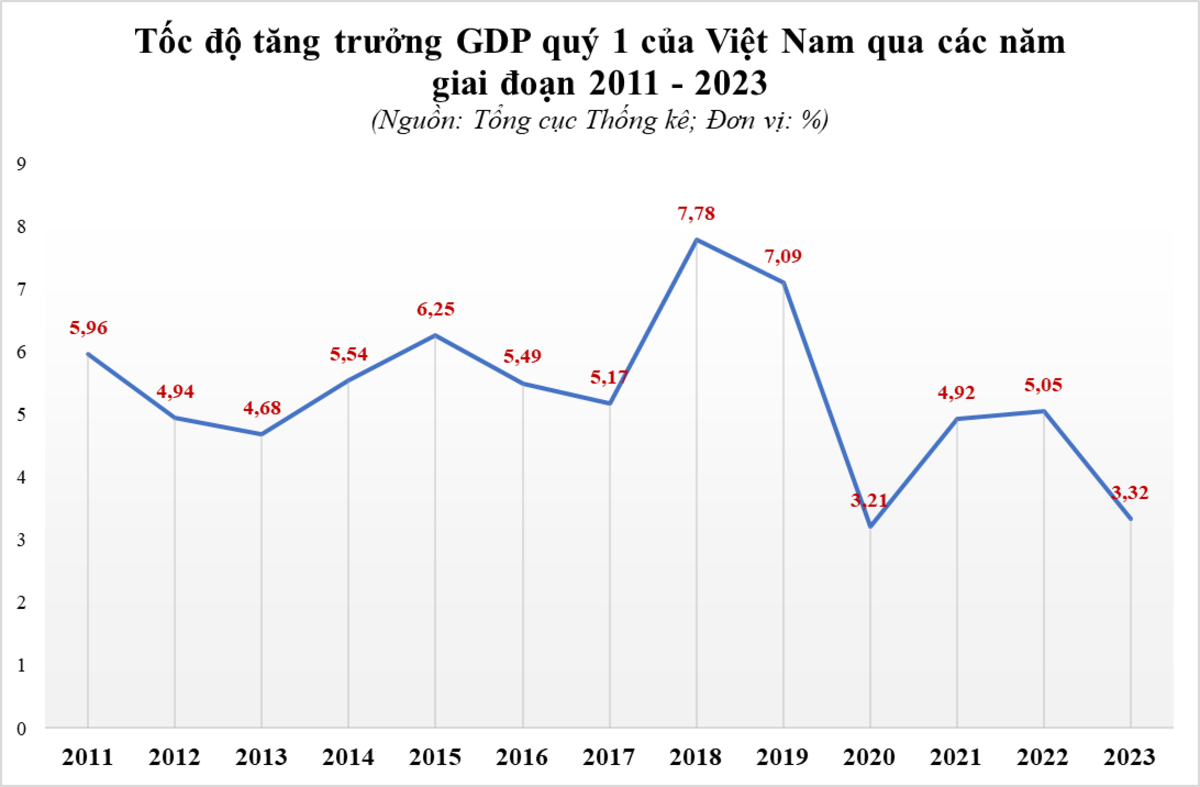 Mức tăng trưởng thấp trong quý I/2023 là điều đã được nhiều chuyên gia kinh tế dự báo từ trước, tuy nhiên 3,32% vẫn là một con số gây bất ngờ. Đặc biệt là so với mức nền tăng trưởng GDP khá thấp của quý I/2022 – thời điểm Việt Nam vẫn còn dịch bệnh, chưa mở cửa hoàn toàn.